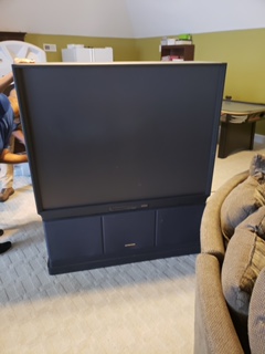 Our guys did what the homeowner thought may be impossible- moving a large, boxy old TV down a narrow stairway and out of the house. They carefully and strategically moved the TV down the interior stairs and out to the driveway to be loaded up without any damage to the walls or floor. Another great job done by the Count Junkula crew, and a happy customer too.